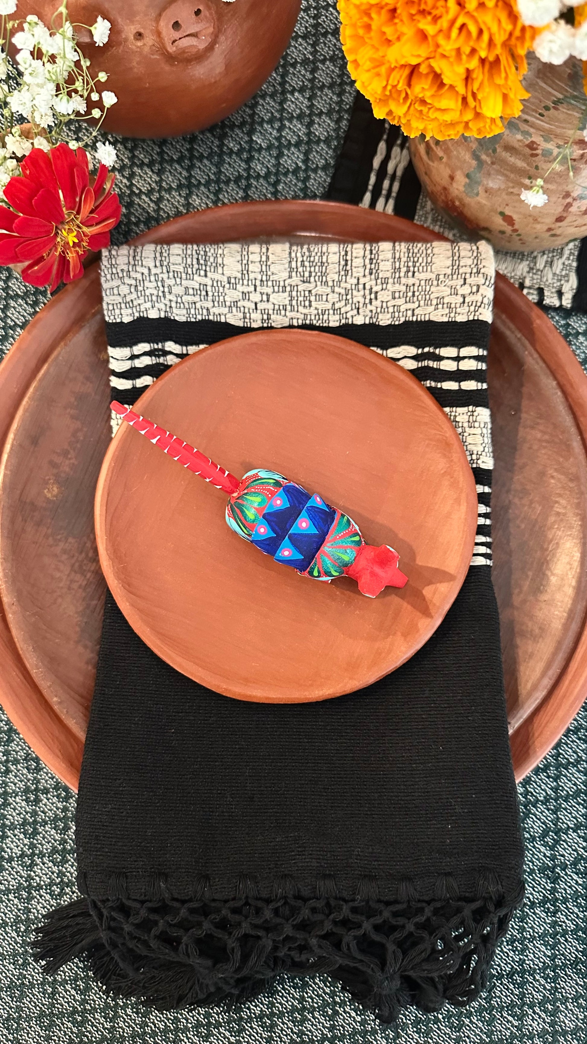 Handcrafted wooden sculpture & hand painted Alebrije, made by artisans in Oaxaca Mexico.